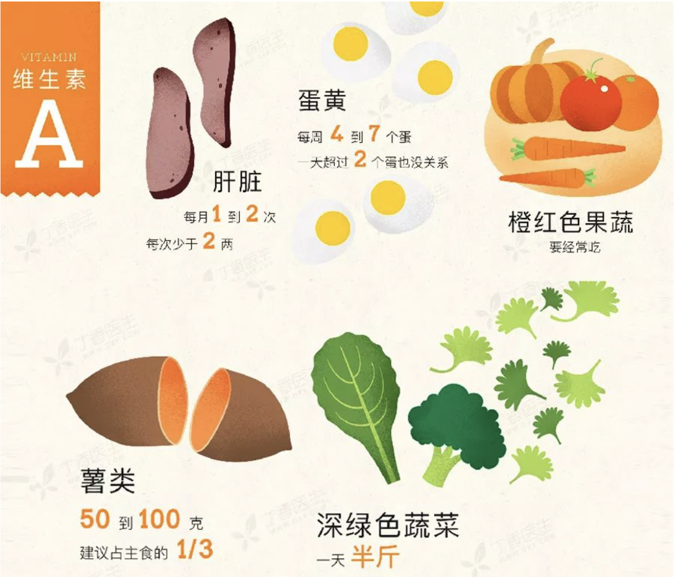 第一,从动物肝脏、奶油和鸡蛋中直接获得维生素A。